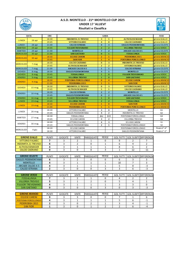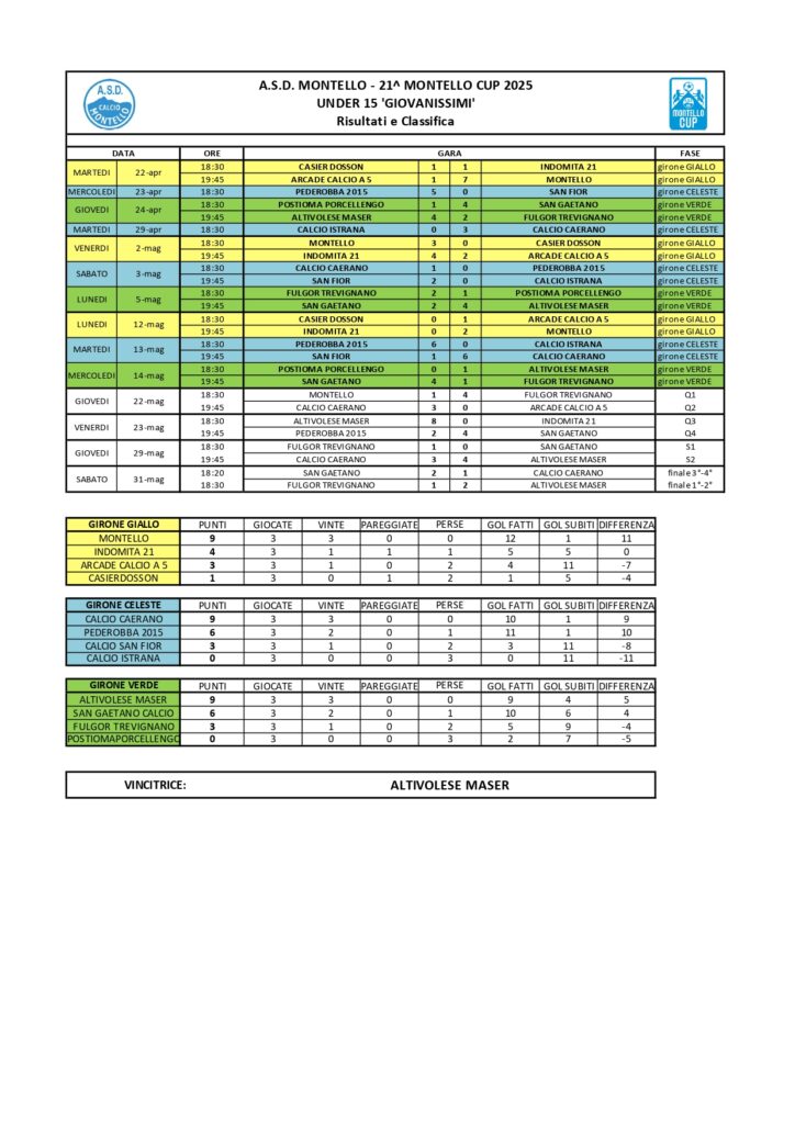 Si avvia alla conclusione l’edizione 2025 della 21^ Montello Cup. Dopo settimane di sfide combattute, entusiasmo e passione in campo, le categorie coinvolte stanno decretando i loro campioni. Di seguito il riepilogo delle fasi finali.