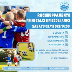 RAGGRUPPAMENTO PRIMI CALCI/PICCOLI AMICI Sabato 02 novembre dalle ore 14:00 andrà in scena presso i nostri impianti sportivi un raggruppamento delle categorie PRIMI CALCI e